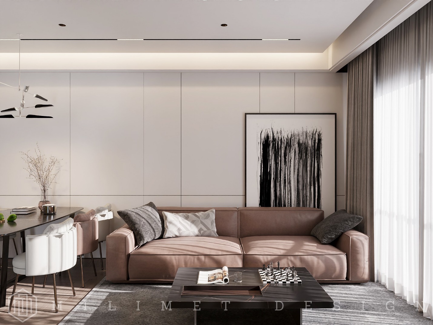 Ánh sáng là một yếu tố vô cùng quan trọng trong thiết kế nội thất hiện đại, và ánh sáng tự nhiên đóng vai trò quan trọng nhất. Để tận dụng ánh sáng tự nhiên, các kiến trúc sư thường thiết kế căn hộ với nhiều cửa sổ hơn và bố trí các rèm cửa để cho phép ánh sáng xuyên qua và chiếu sáng căn phòng.