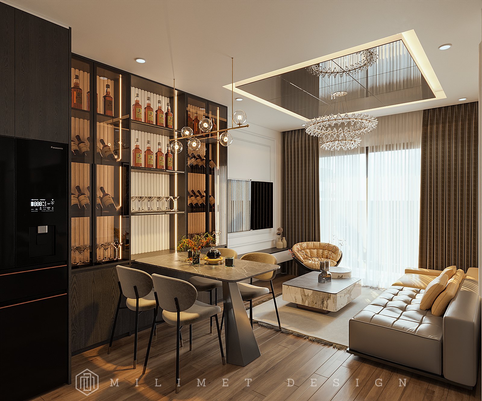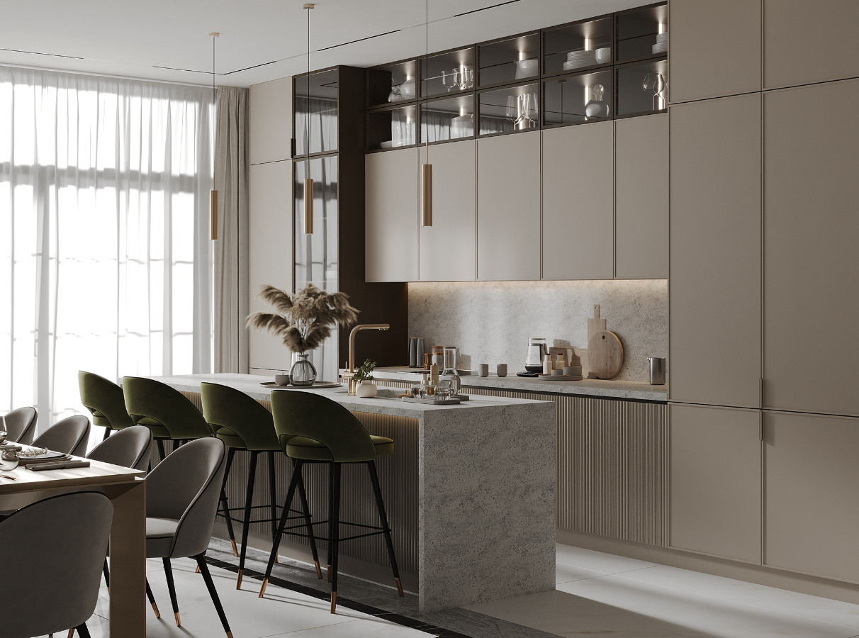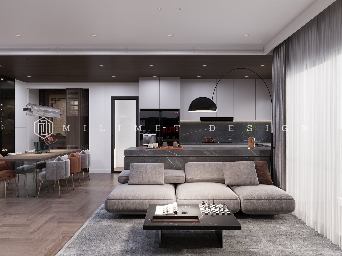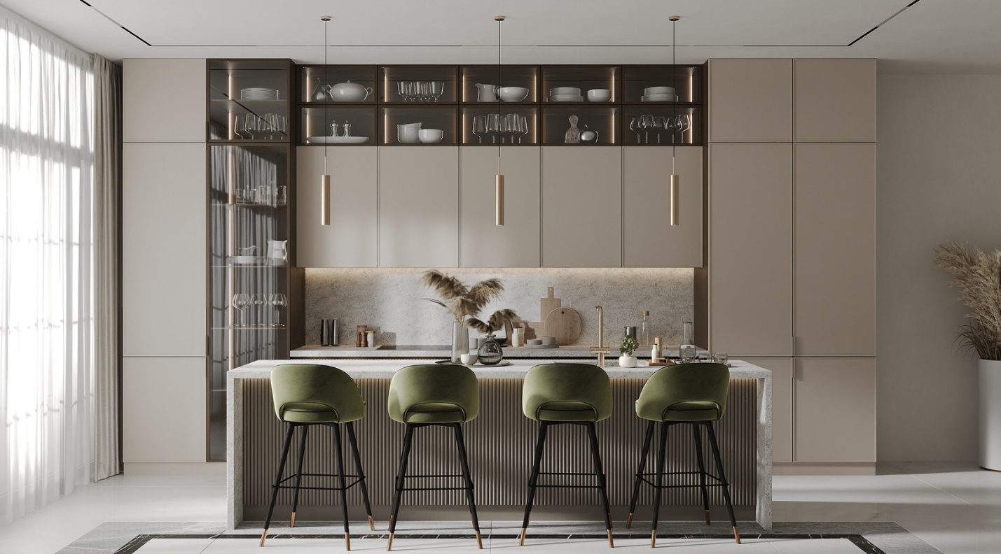 Trong thiết kế nội thất hiện đại, việc phân chia không gian trong căn hộ là rất quan trọng. Bạn có thể kết hợp không gian bếp và phòng khách một cách thông minh để tối ưu hóa diện tích sử dụng cho các không gian khác.