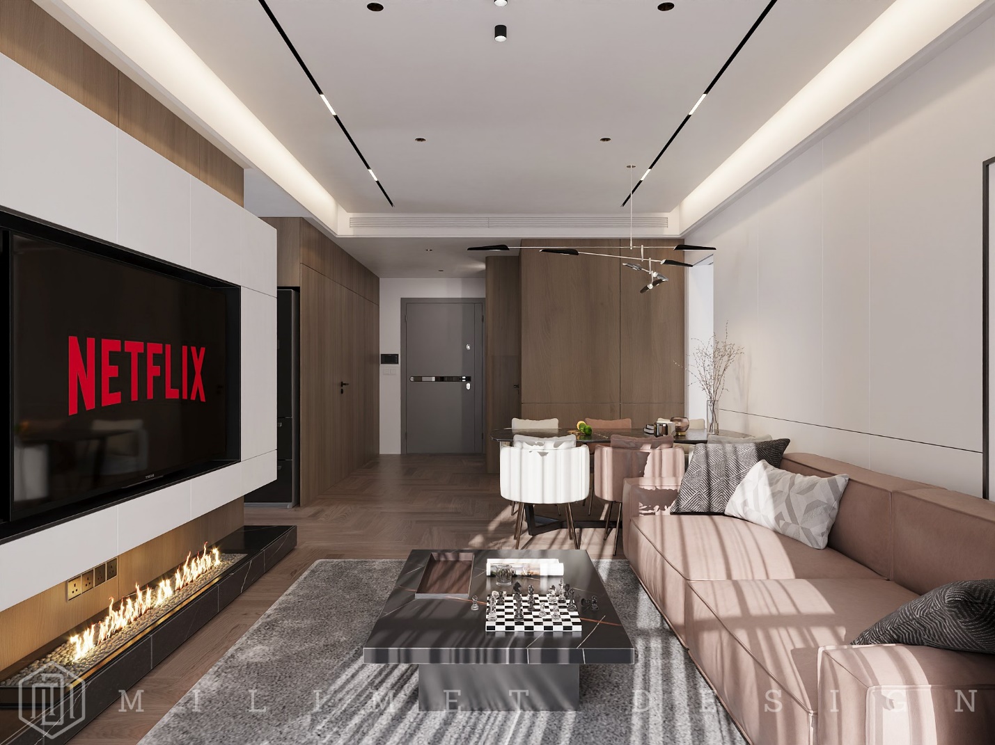 Bên cạnh việc chú trọng đến màu sắc, việc bố trí nội thất trong phong cách hiện đại cũng rất quan trọng để tạo ra sự cân đối và thống nhất cho từng không gian trong căn hộ.